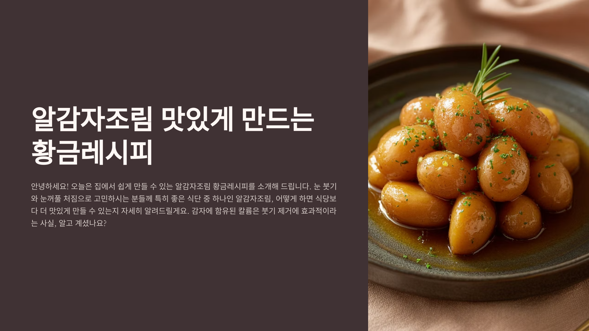 조림 맛을 좌우하는 건 감자 손질과 양념장 비율 그리고 조림 시간인데요, 하나씩 꼼꼼히 준비하면 누구나 쉽고 맛있게 만들 수 있어요. 오늘은 황금레시피로 알감자조림 만드는 방법을 자세히 소개할게요!